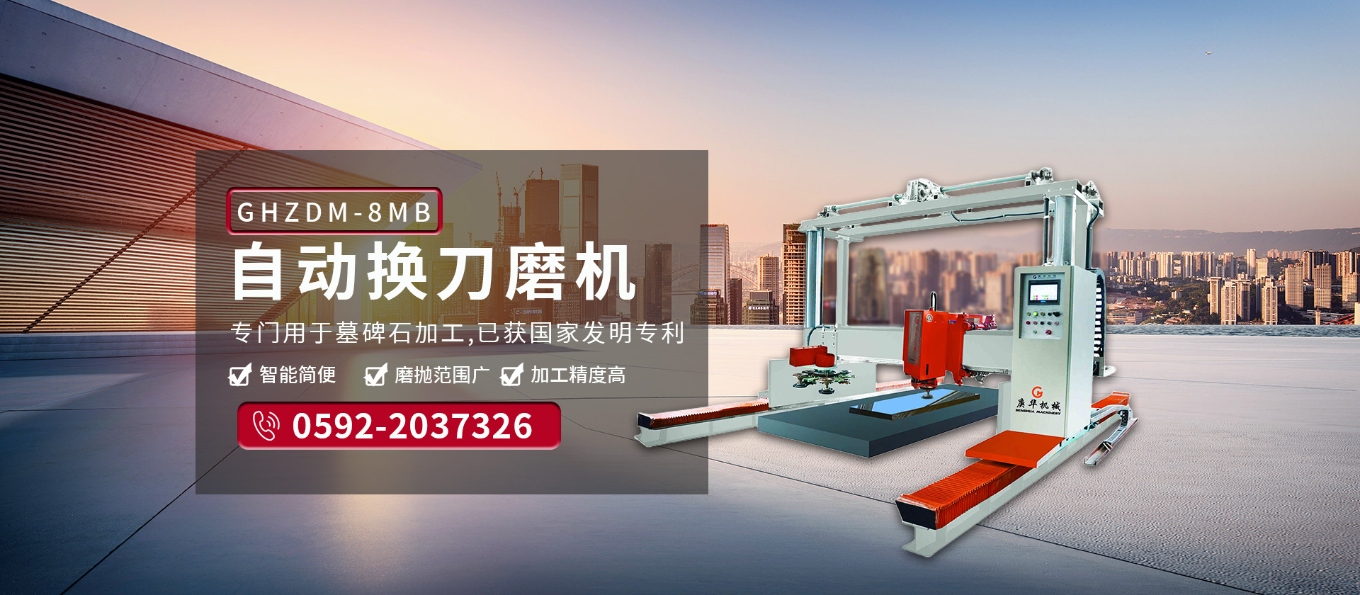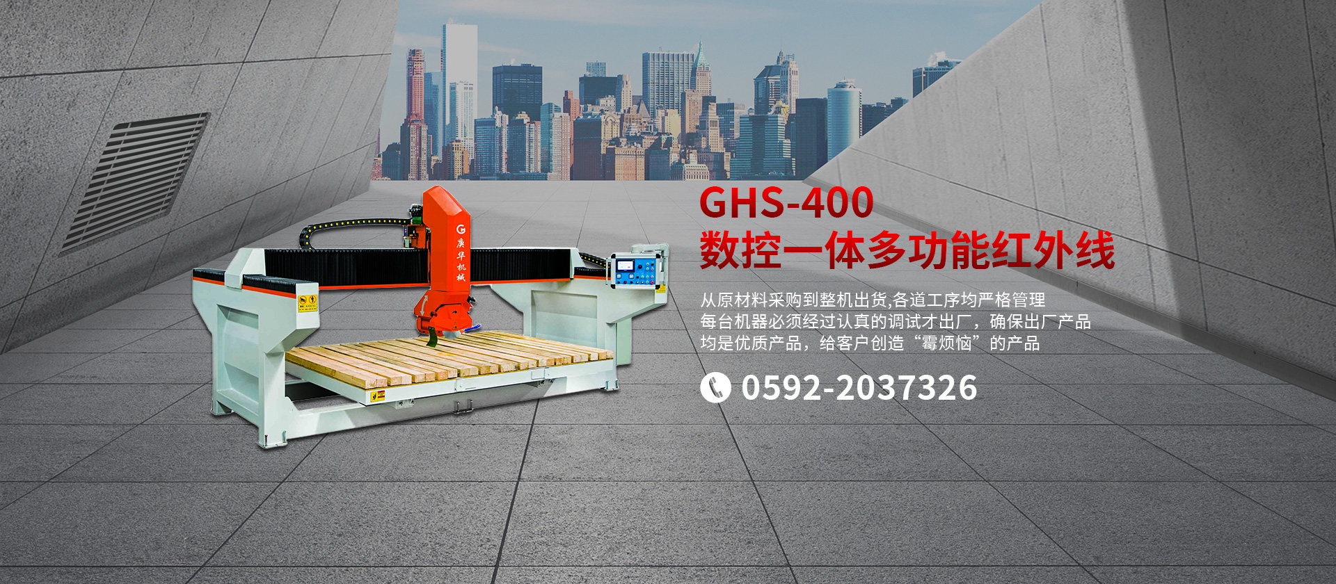 公司生產(chǎn)適用于大理石、花崗巖、砂巖、石灰?guī)r、洞石、玉石等各種石材的機(jī)械設(shè)備。主要產(chǎn)品有GHHW系列紅外線橋式切邊機(jī)、GHQQ系列橋式多片組合鋸石機(jī)、各種手動(dòng)/自動(dòng)/單頭/多頭板材磨拋機(jī)、以及各種異形加工設(shè)備。公司長(zhǎng)期注重品質(zhì)管理,以質(zhì)量為中心,從原材料采購(gòu)到整機(jī)出貨,各道工序均嚴(yán)格管理,每臺(tái)機(jī)器必須經(jīng)過(guò)認(rèn)真的調(diào)試才出廠,確保出廠產(chǎn)品均是優(yōu)質(zhì)產(chǎn)品,給客戶創(chuàng)造“零煩惱”的產(chǎn)品。